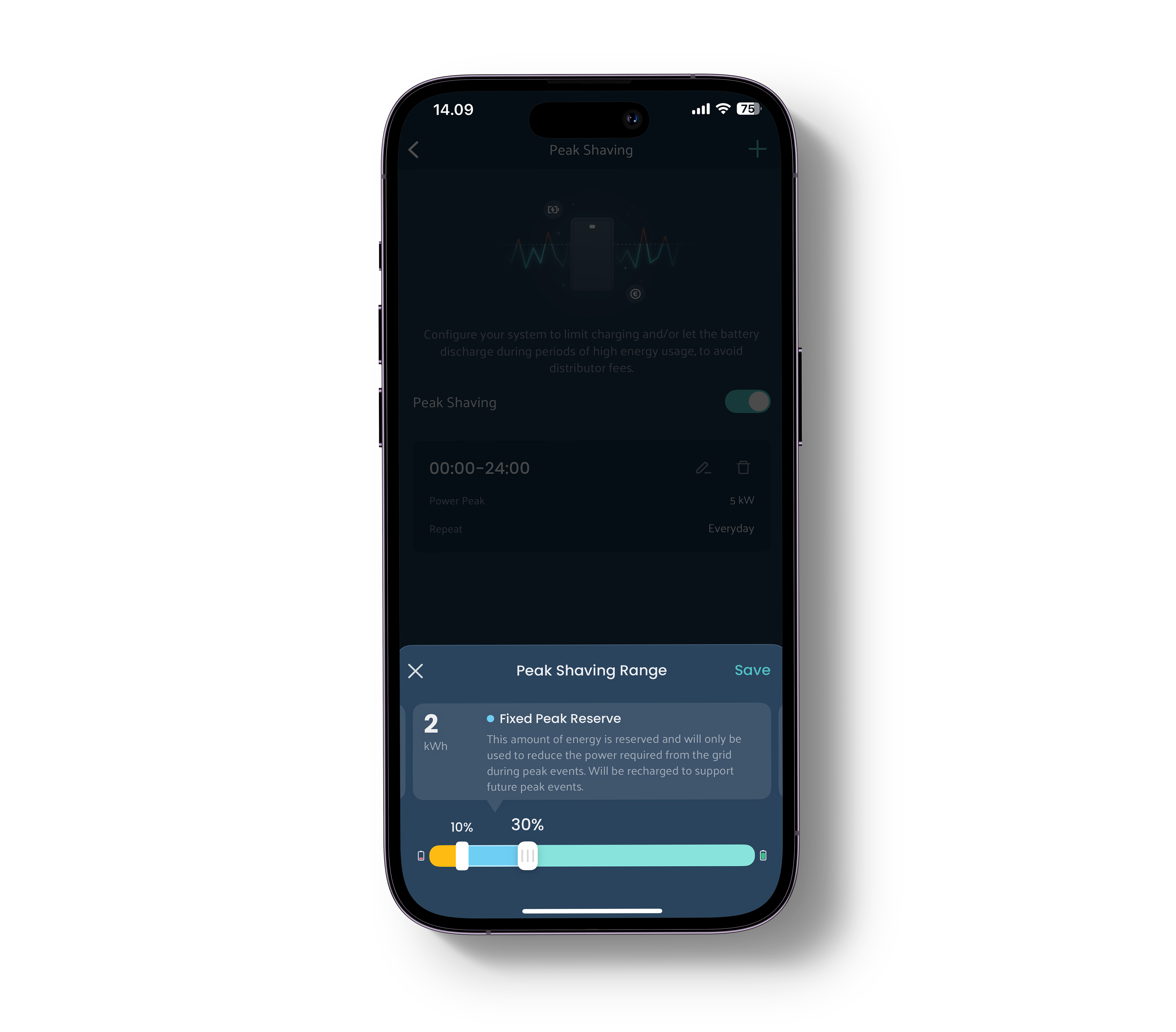 ⚠️ Tato příručka vás naučí, jak aktivovat a nastavit Peak Shaving v aplikaci Emaldo®.