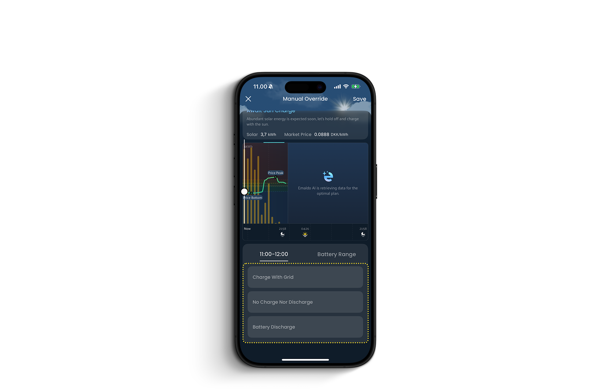 ⚠️ Den här guiden lär dig hur du manuellt gör en överstyrning av AI-läget i både Emaldo®️ Power Core version 1 och 2-system. Bekräfta vilken version du har genom att trycka på i Emaldo-appen ®️.